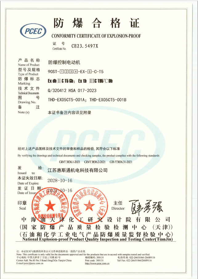 90基座ⅡCT5防爆控制電動(dòng)機(jī)證書(shū)
