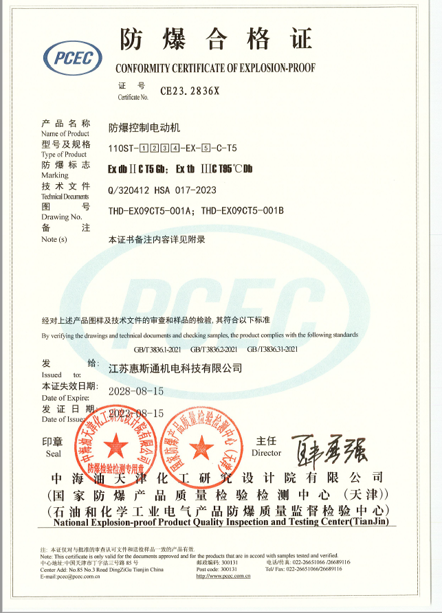 110基座ⅡCT5防爆控制電動機證書